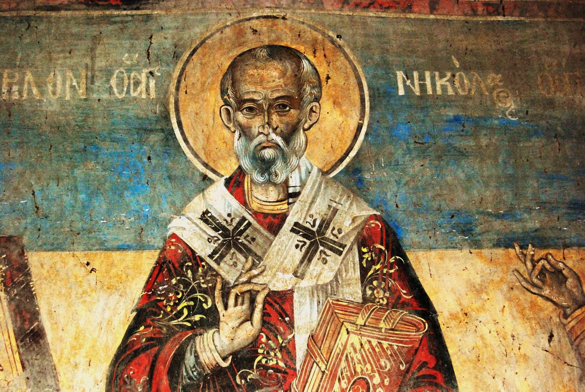 Other early stories tell of him calming a storm at sea, saving three innocent soldiers from wrongful execution, and chopping down a tree possessed by a demon. In his youth, he is said to have made a pilgrimage to Egypt and Palestine. Shortly after his return, he became Bishop of Myra. He was later cast into prison during the persecution of Diocletian, but was released after the accession of Constantine. An early list makes him an attendee at the First Council of Nicaea in 325 where he reportedly slapped Arius for being a heretic.